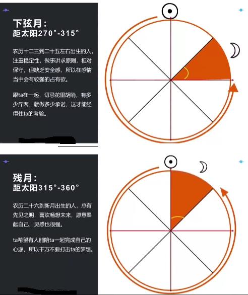 其实月亮落哪个星座?这一点是由阳历生日来决定的,整个星盘呢也是看的阳历。而阴历可以看出来的是星盘里面月亮和太阳的角度关系。