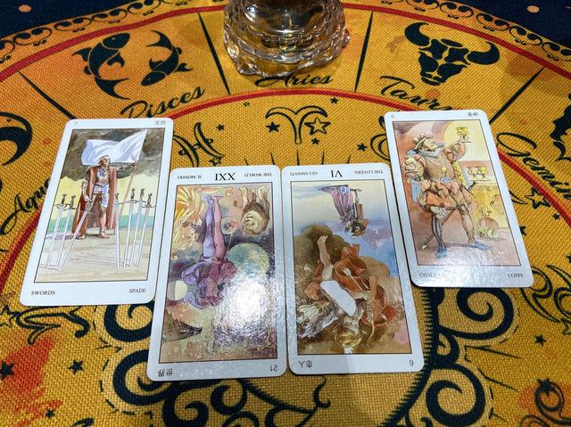 我觉得白羊座你们这一年过得还蛮不容易的,也遇到了一些比较大的转折,从这个牌面可以感受到你们近期的状况容易有一种繁忙,但是呢因为繁忙,所以你的交友圈变得很小,很多事情可能好像没有时间向对方抒发,或者是向别人抒发,很多事情都是憋在心里,没有很好的去表达,所以这边我会觉得当下有一些白羊座会显得自己有一点比较孤寂的状况,或者是单打独斗的状况,而且你们白羊座的牌卡这里有一个讯息是,你们在最近跟前期的时候比较多时间会处在低潮期,没有办法很好的表现自己,或者是在享受爱情上面的滋润,但是有趣的是,这里的牌卡表示你们在年底的时候爱情方面的好运是非常明显的。
